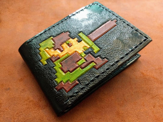 8 bit Link and Zelda - pixel - sprite - NES - Leather Bifold Wallet - Handcrafted Wallet -